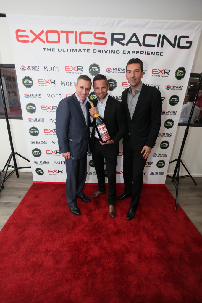 Exotics Racing Grand Ribbon Cutting and VIP Opening of The Welcome Center 2015 Crowd at ribbon cutting Romain Thievin and David Perisset cutting ribbon Exotics Racing ribbon cutting Ian Staller, David Perisset, Sebastien Silvestri Grand opening champagne EXR Stig and cake by Claude Escamilla Fleet of cars lined up Live painting by the ISI Group Guest in car